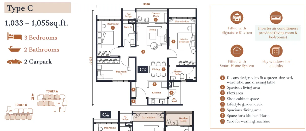 Affordable pricing from 2 to 4 rooms with hackable wall (customisable layout) With over 1,000 sqft of living space, there's plenty of room for everyone to find their own space and enjoy their home to the fullest.